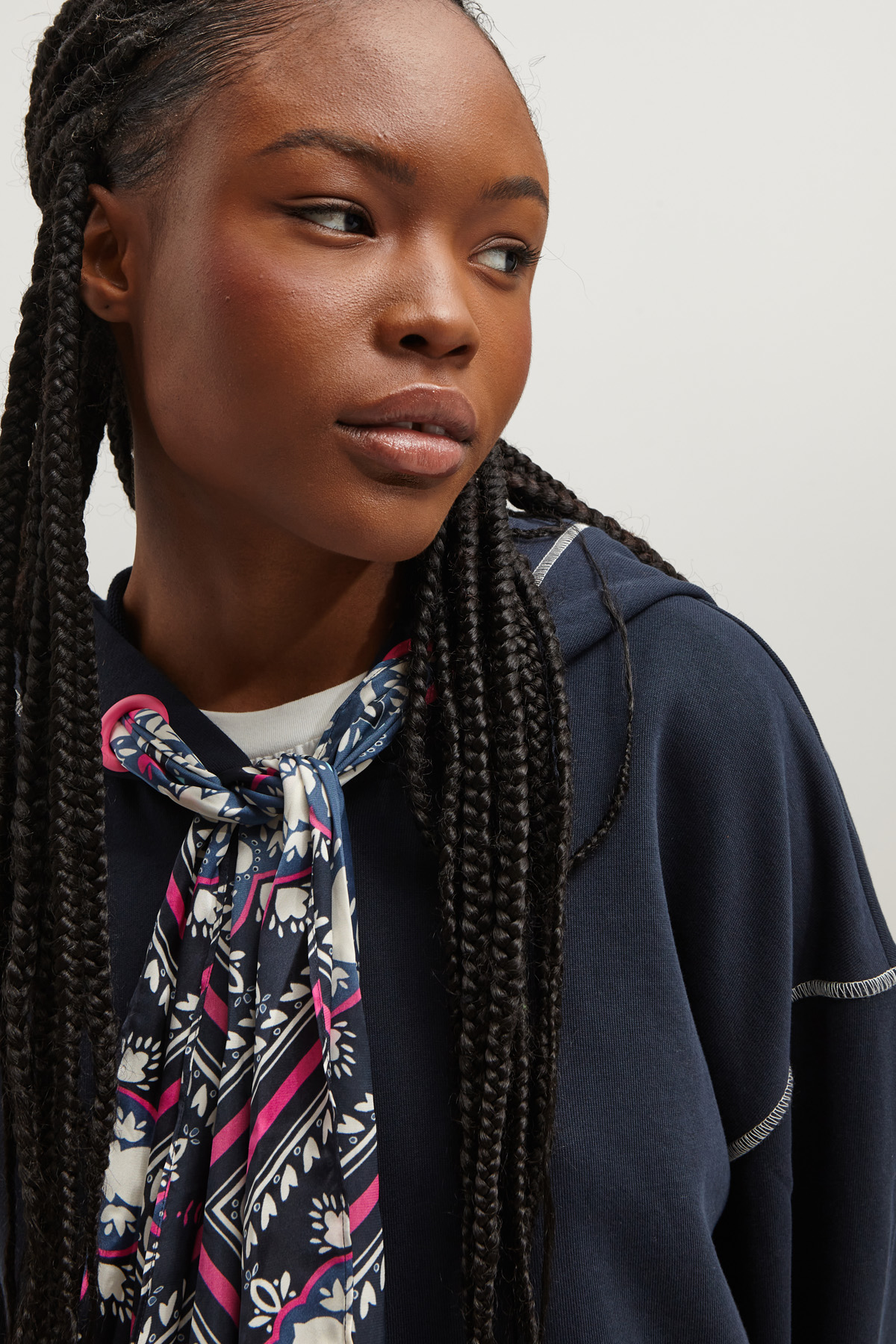 Felpa dalla linea morbida realizzata in jersey pesante di puro cotone, con cappuccio e coulisse, maniche lunghe dal giro sceso, tasche a marsupio, spacco nel retro e profili rifiniti a coste. Allacciatura tramite cerniera.