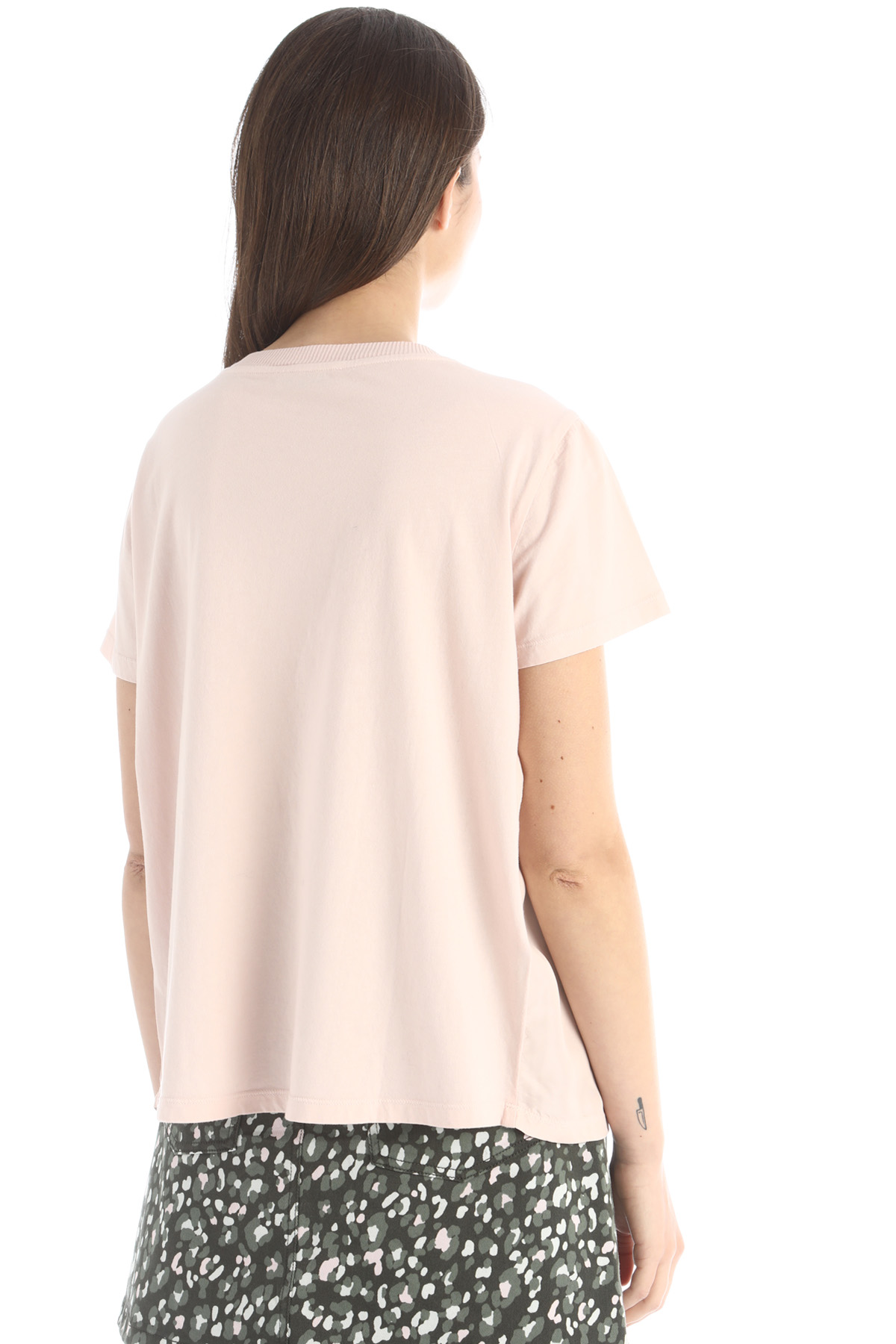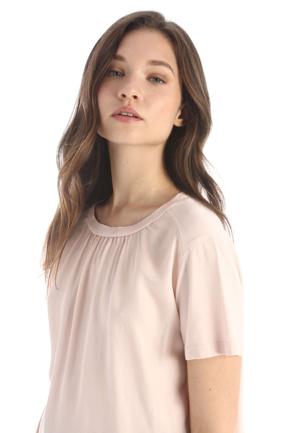 T-shirt dalla linea dritta realizzata in twill di misto viscosa sul davanti e jersey di puro cotone sul retro, con scollo rotondo e maniche corte.