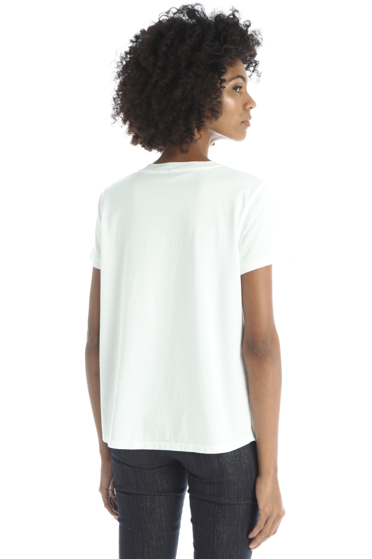 T-shirt dalla linea dritta realizzata in twill di misto viscosa sul davanti e jersey di puro cotone sul retro, con scollo rotondo e maniche corte.