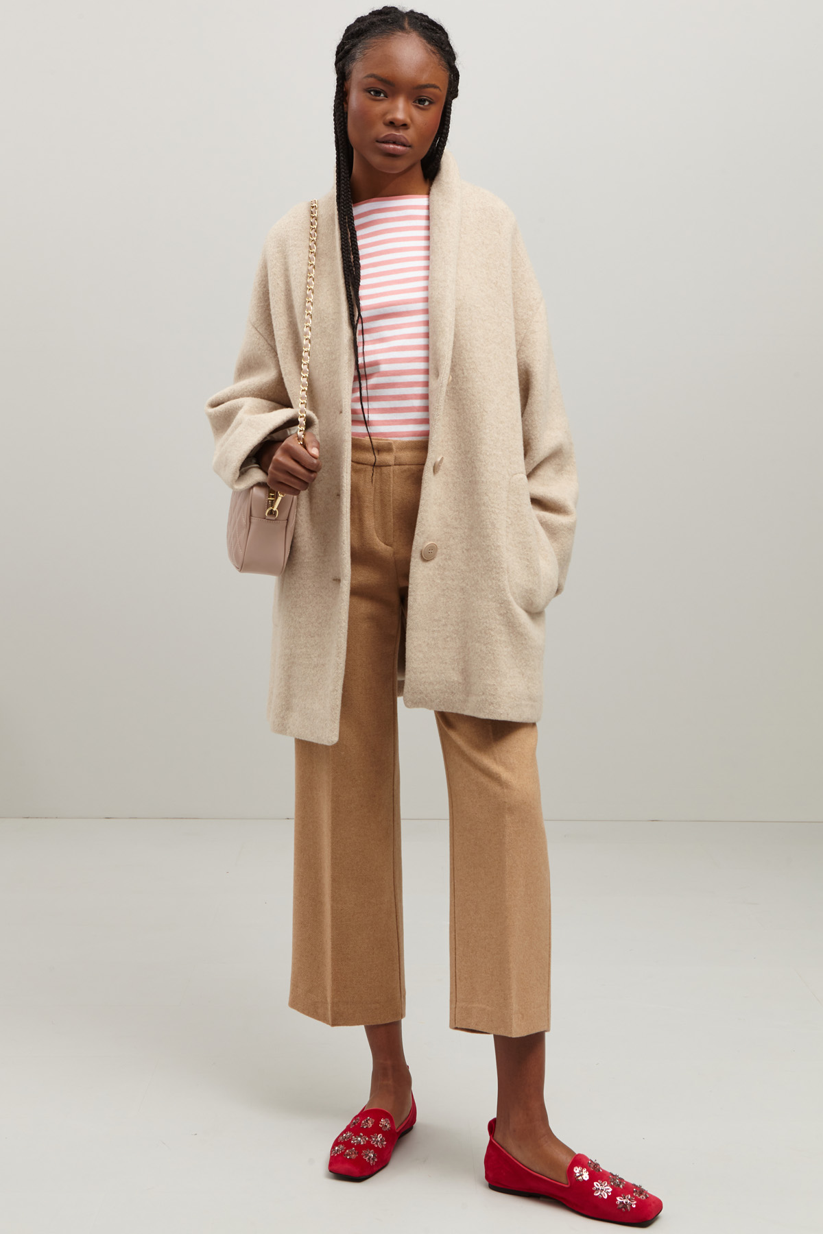 - La modella è alta 180 cm e indossa la taglia M. Le sue misure sono: seno 82 cm, vita 62 cm e fianchi 87 cm
