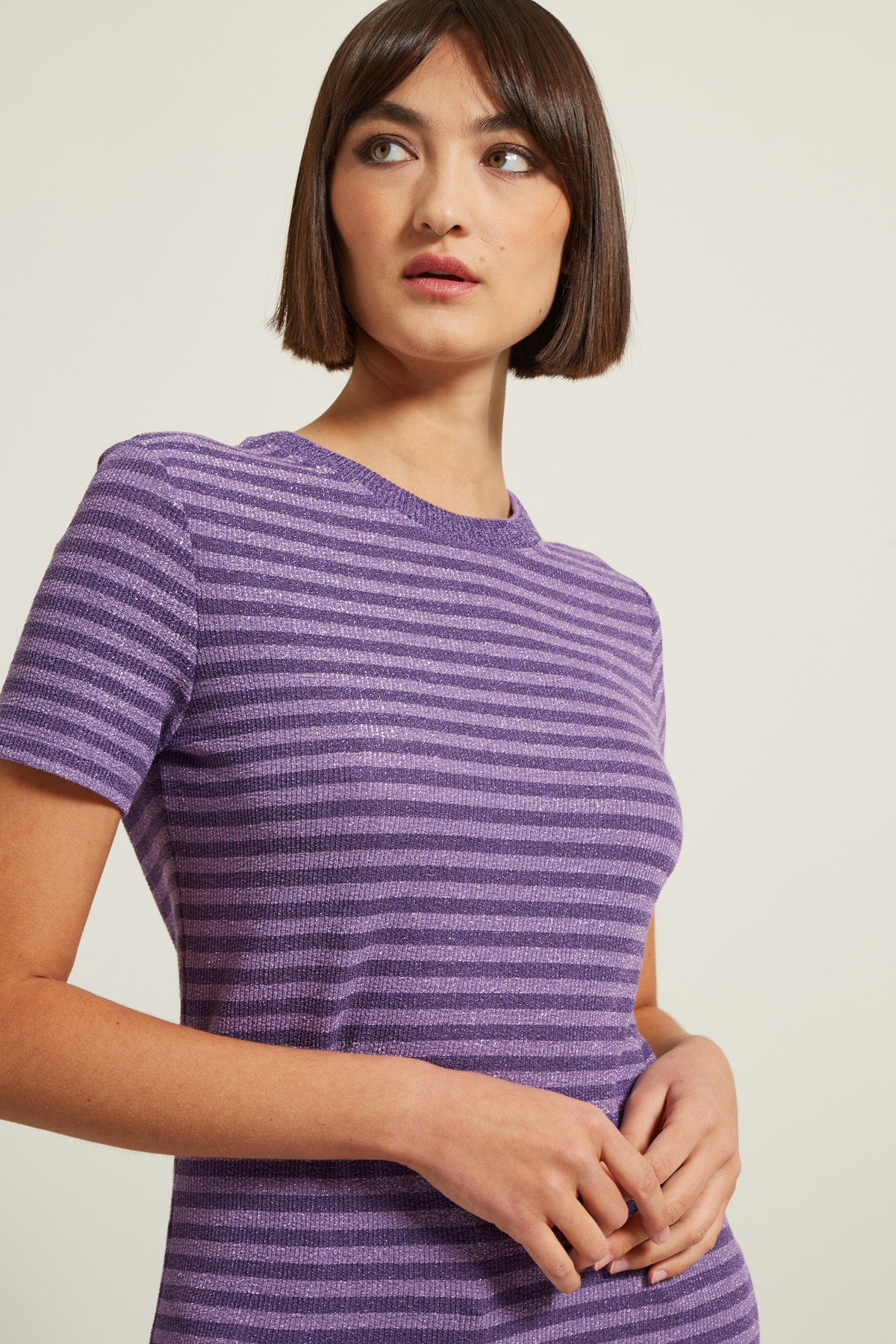 T-shirt a coste lamè