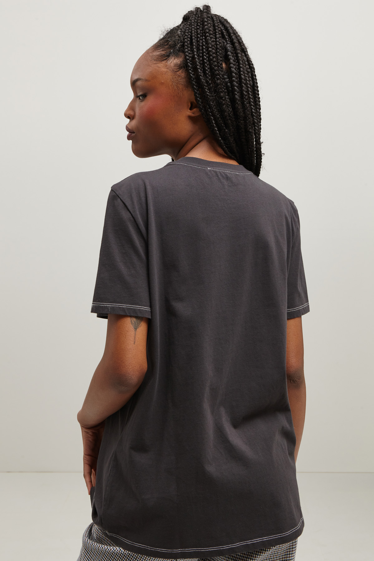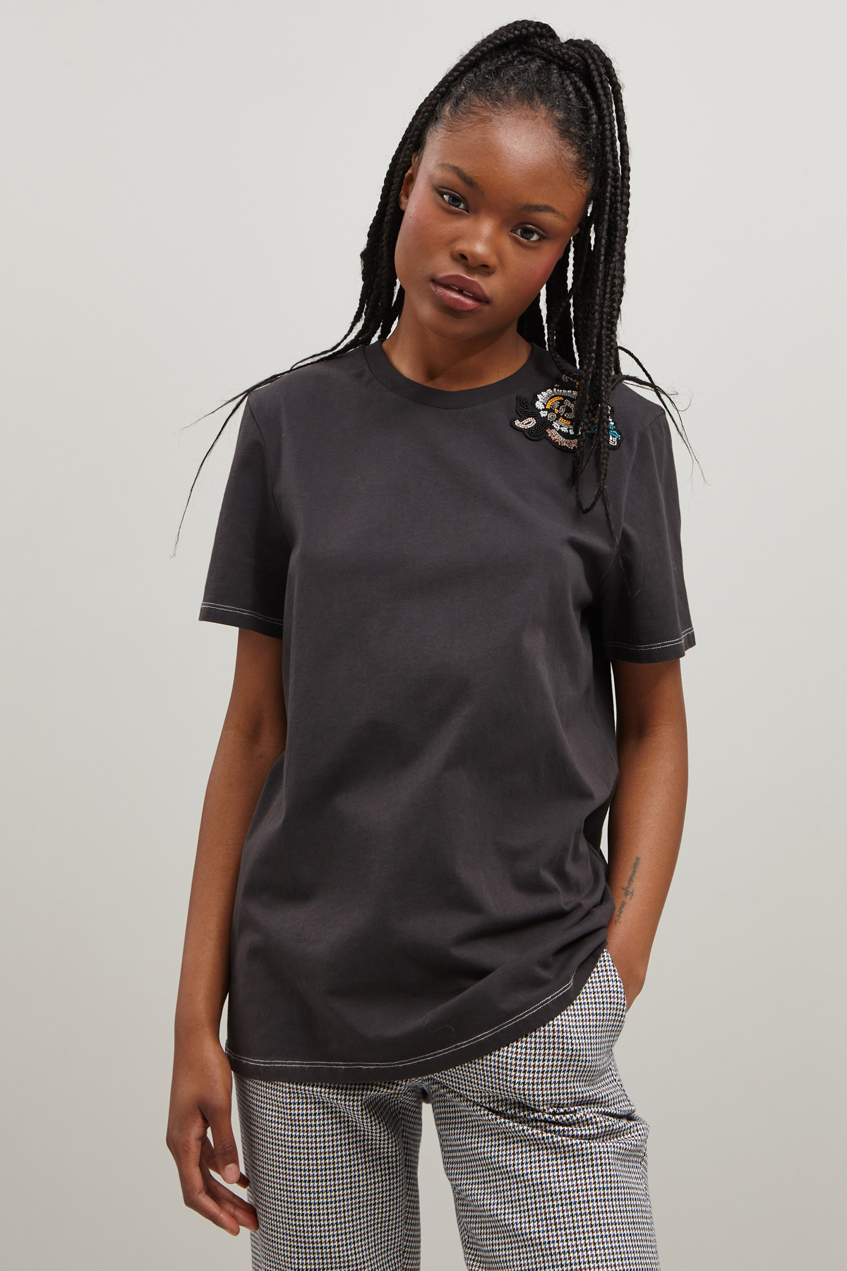 T-shirt dalla linea dritta realizzata in jersey di puro cotone, con motivo applicato sul davanti, scollo a giro e maniche corte.