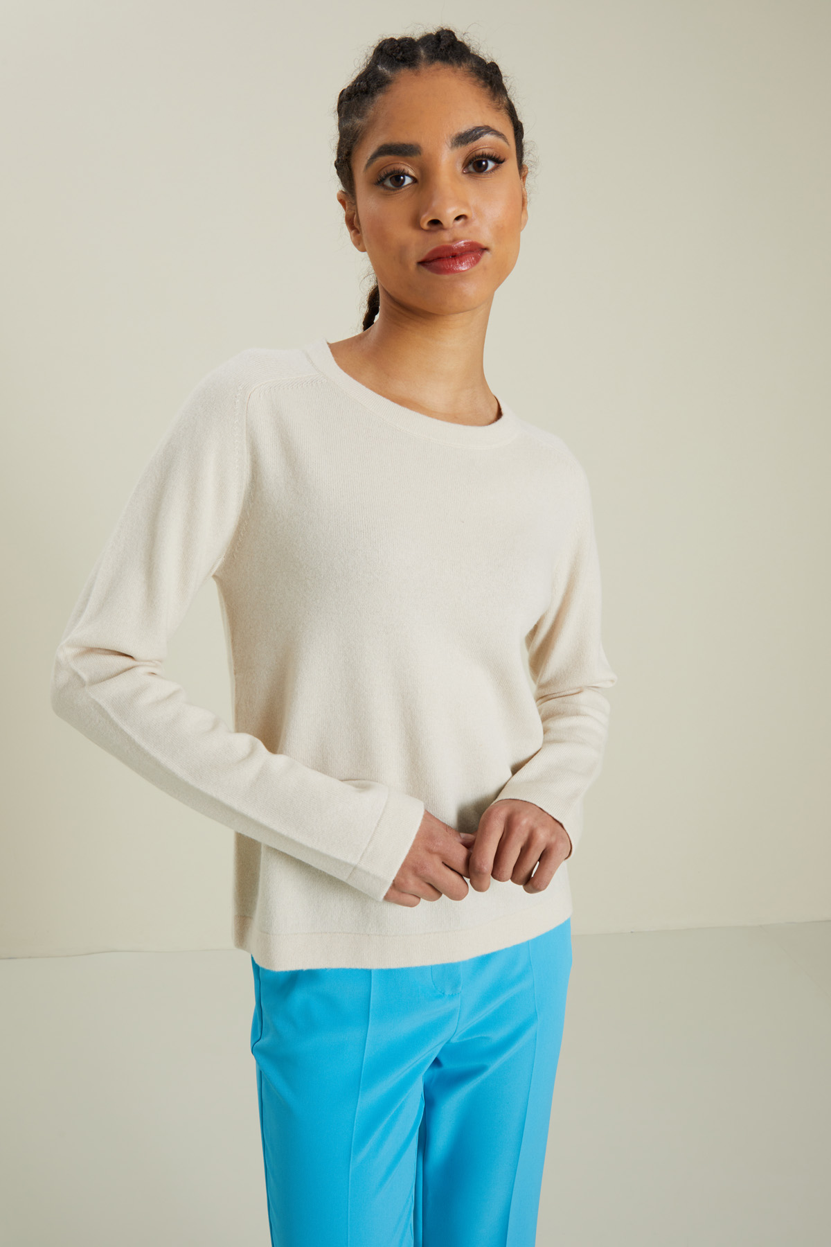 Maglia dalla linea dritta realizzata in filato di lana e cashmere, con scollo a giro, maniche lunghe raglan e profili rifiniti a costine.