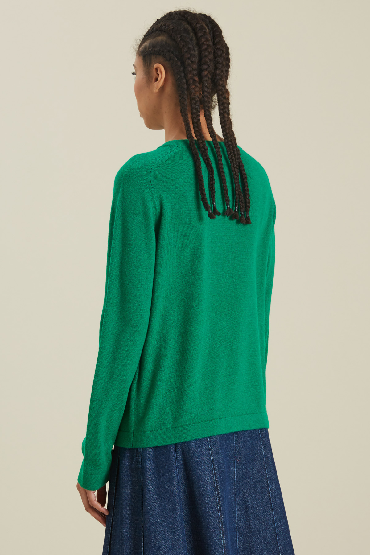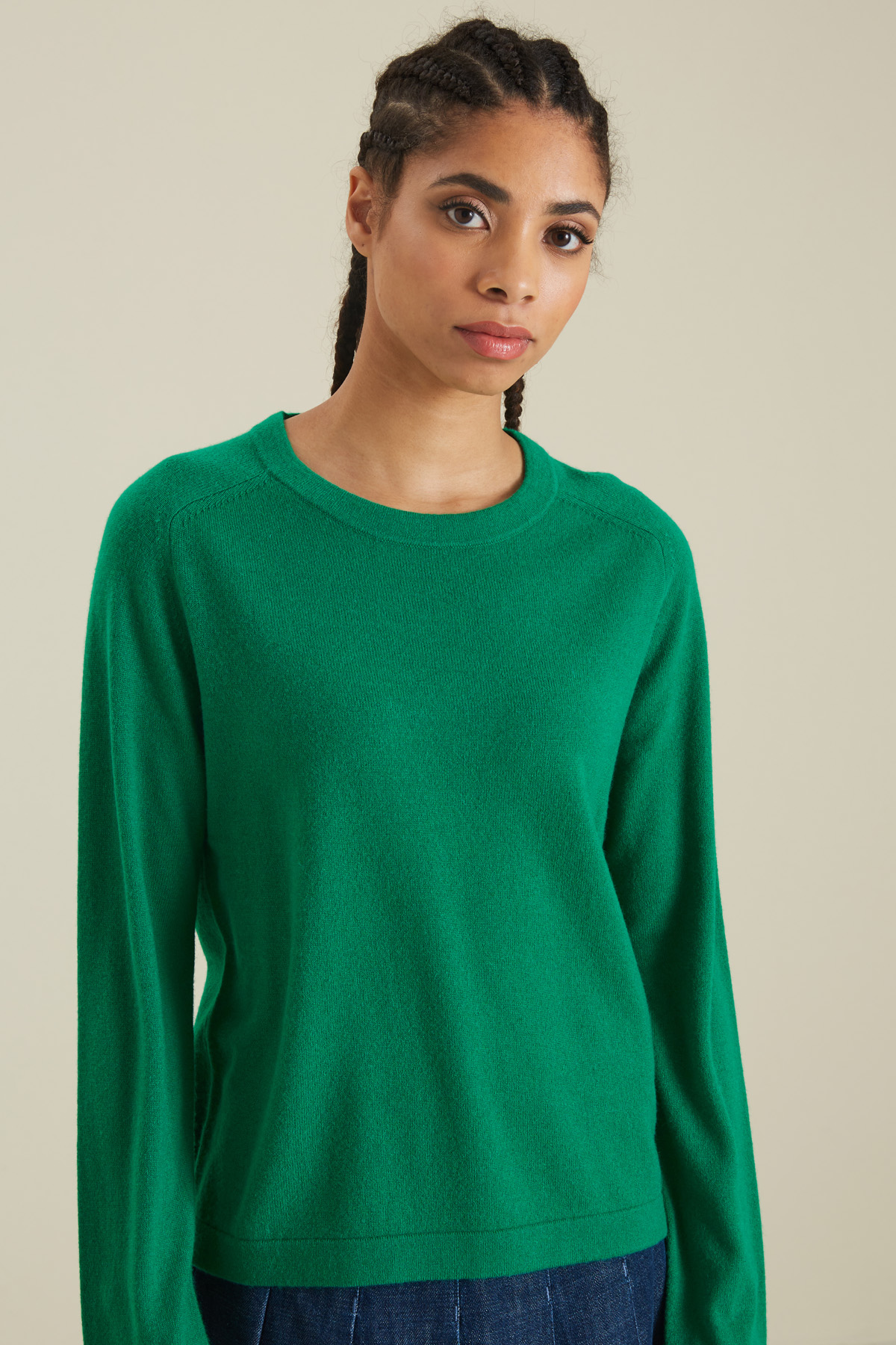 Maglia dalla linea dritta realizzata in filato di lana e cashmere, con scollo a giro, maniche lunghe raglan e profili rifiniti a costine.