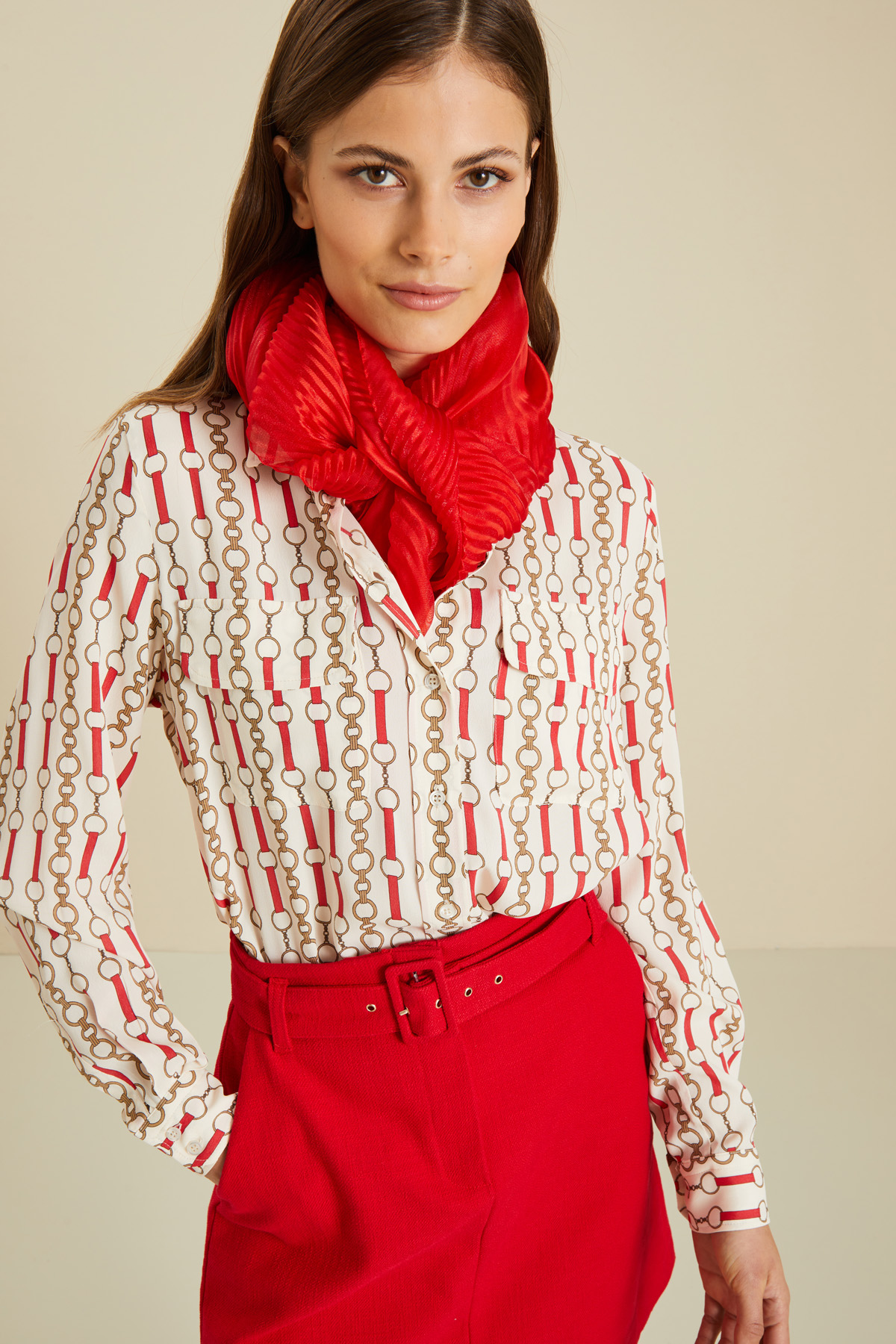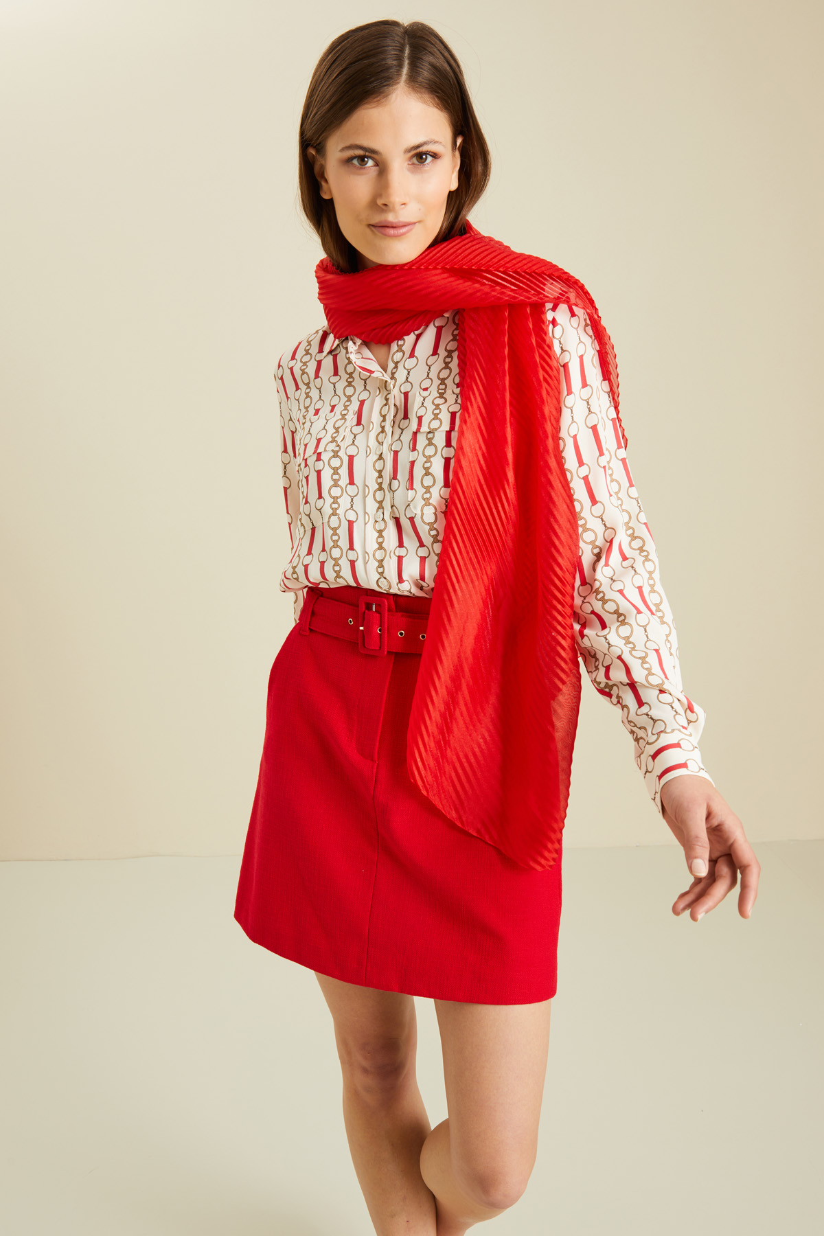 Stola realizzata in garza dal finish laminato e lavorazione plissè.