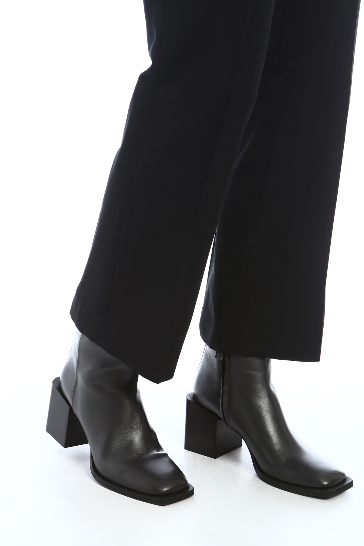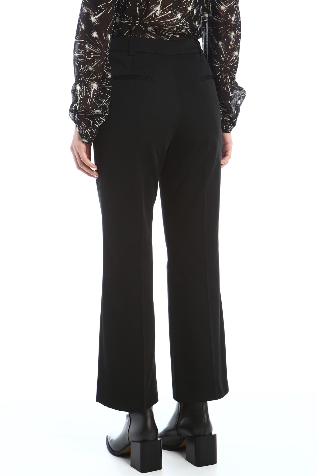 Pantaloni dalla linea a trombetta realizzati in ottoman, con tasche laterali alla francese e a doppio filetto dietro. Allacciatura nascosta con zip, bottone e gancio.