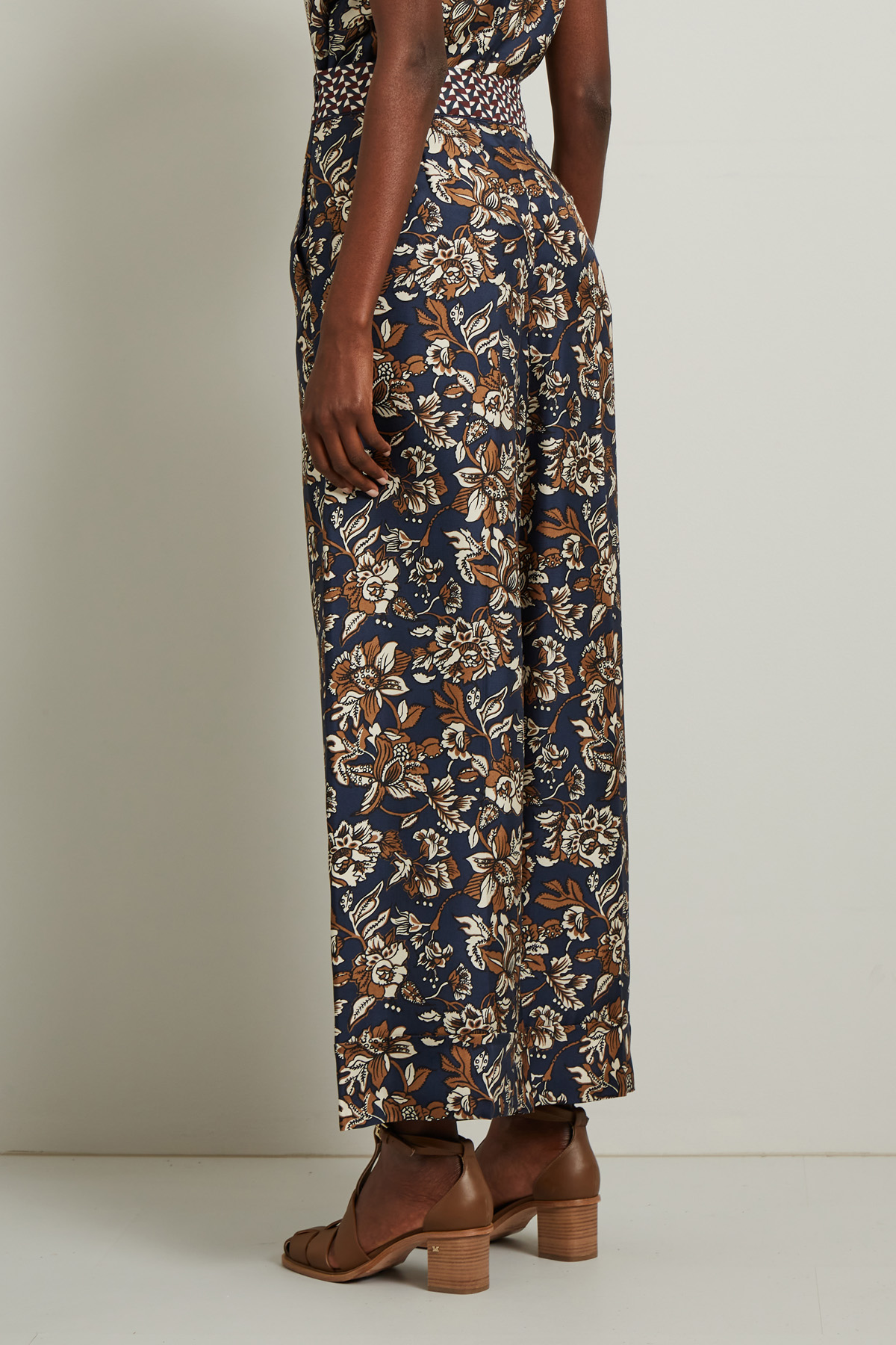 Pantaloni dalla linea ampia realizzati in twill di pura seta, con cintone in vita, tasche alla francese e risvolto cucito a fondo capo. Allacciatura tramite zip invisibile nel fianco.