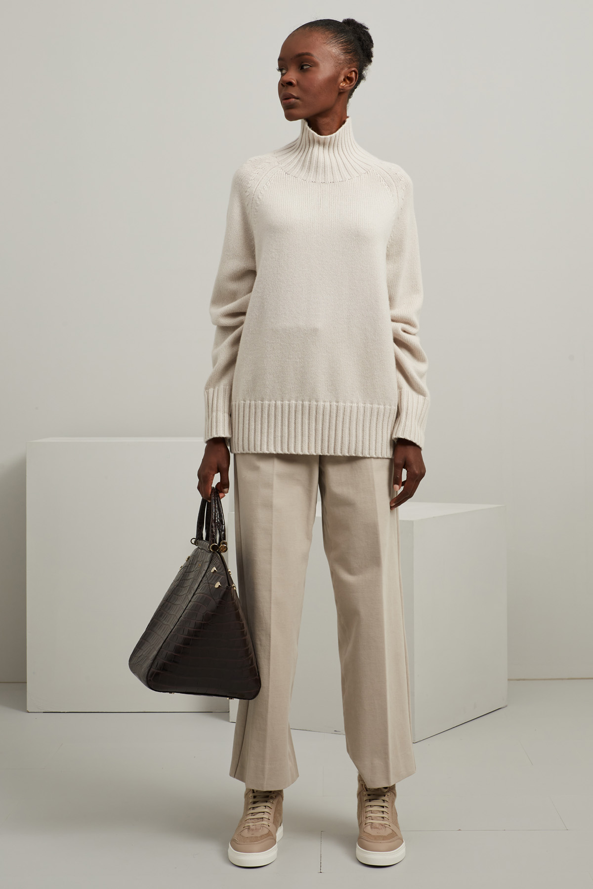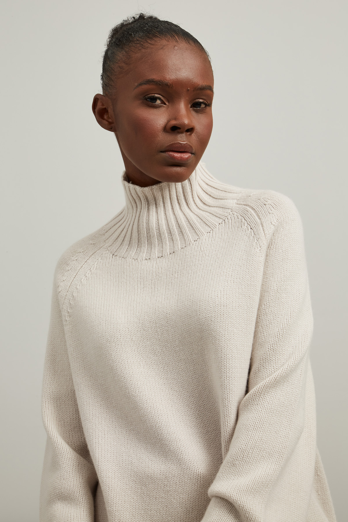 Maglia dalla linea dritta realizzata in filato di lana e cashmere, con collo a cratere, maniche lunghe raglan e profili rifiniti a coste.